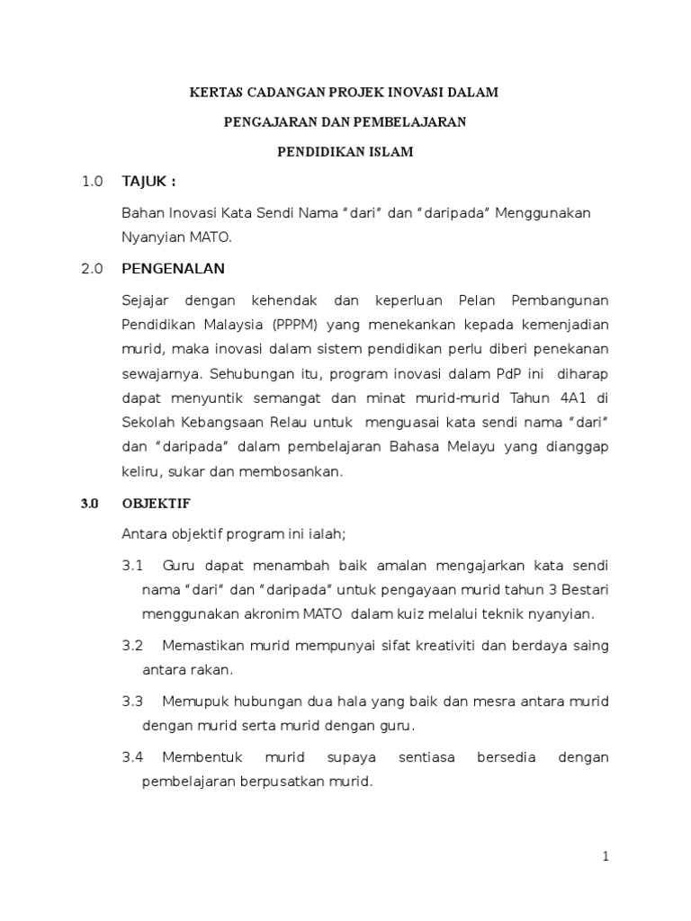Kertas Cadangan Projek Inovasi Dalam Pdf